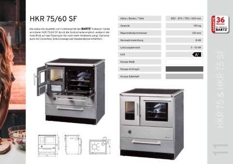 wird beim HKR 75/60 SF durch die Sichtscheibe ergänzt, wodurch der Rauchrohrdurchmesser 120 mm