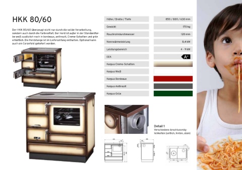 sondern auch durch die Farbvielfalt. Der Herd ist außer in der Standardfar- Rauchrohrdurchmesser 120 mm