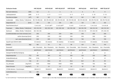 Exklusive Herde HKC 80/60 HKR 40/60 HKR 40/60 SF HKR 50/60 HKR 60/60 HKR 75/60 HKR 75/60 SF