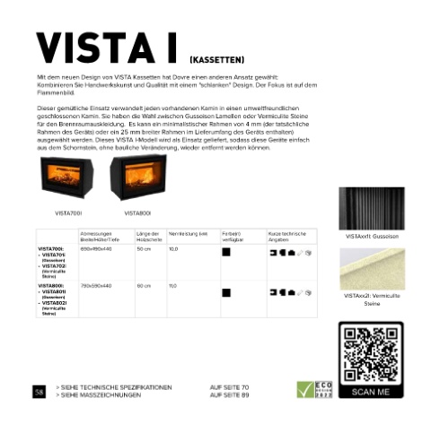ausgewählt werden. Dieses VISTA I-Modell wird als Einsatz geliefert, sodass diese Geräte einfach