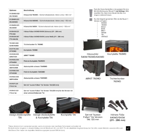 66 Die technischen Angaben in diesem Katalog sind mit Stand vom 30. Juni 2021. Für die aktuelisten Angaben besuchen Sie bitte unsere Website: www.dovrefire.com. 67 67