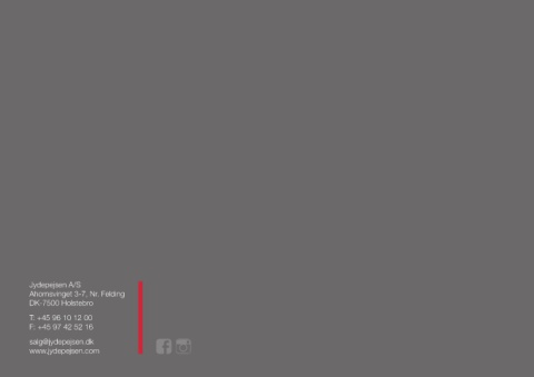 Jydepejsen A/S Ahornsvinget 3-7, Nr. Felding DK-7500 Holstebro T: +45 96 10 12 00 F: +45 97 42 52 16 salg@jydepejsen.dk www.jydepejsen.com