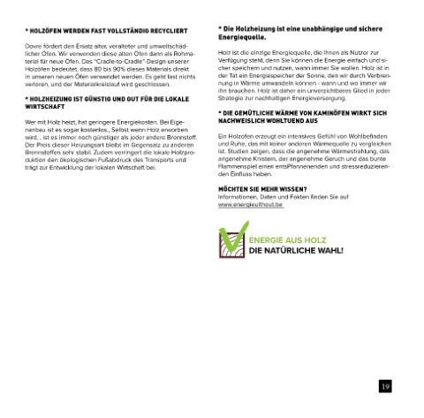 Brennstoffen sehr stabil. Zudem verringert die lokale Holzpro- ist. Studien zeigen, dass die angenehme Wärmestrahlung, das