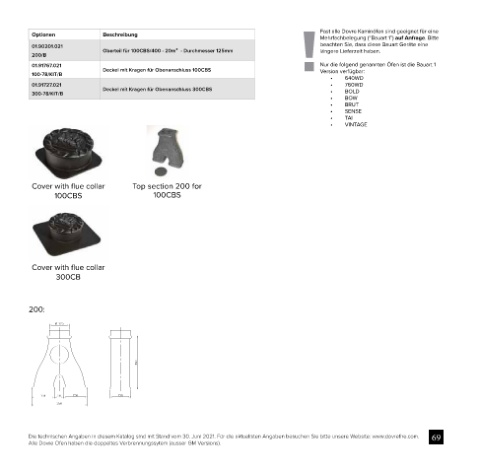 68 Die technischen Angaben in diesem Katalog sind mit Stand vom 30. Juni 2021. Für die aktuelisten Angaben besuchen Sie bitte unsere Website: www.dovrefire.com. 69 69