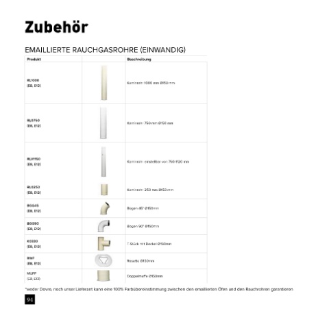 *weder Dovre, noch unser Lieferant kann eine 100% Farbübereinstimmung zwischen den emaillierten Öfen und den Rauchrohren garantieren