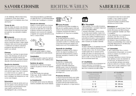 Antes de instalar una estufa o una chimenea debe tener una sección igual a la de ésta, La scelta del termoprodotto da installare va Il dato è indicativo. Per un corretto dimensiona- Beheizbare m³