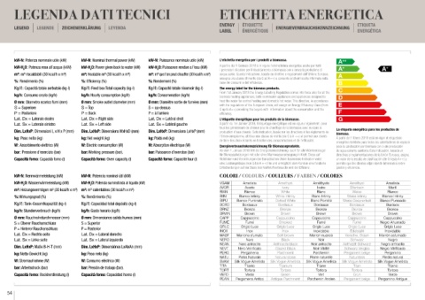 LEGENDA DATI TECNICI ETICHETTA ENERGETICA