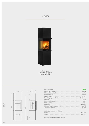 Brennholzlänge max . . . . . . . . . . . . . . . . . . . . . . . . . . . . . . . . . . . . . . . . . . . . . . . . . 33 cm